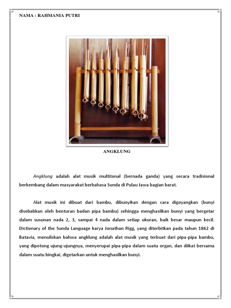 Alat musik alat musik dan lagu page 5. Taukah kamu dari sekian banyak alat musik tradisional di indonesia? Alat ini berasal dari daerah sumatera selatan. Jenis recorder ada empat macam dari ukuran paling besar yakni sopran, recorder sopranino alto, dan tenor. Suling dari seruas bambu yang kedua ujungnya disumbat dan salah satunya dipotong miring seperti berbentuk paruh.